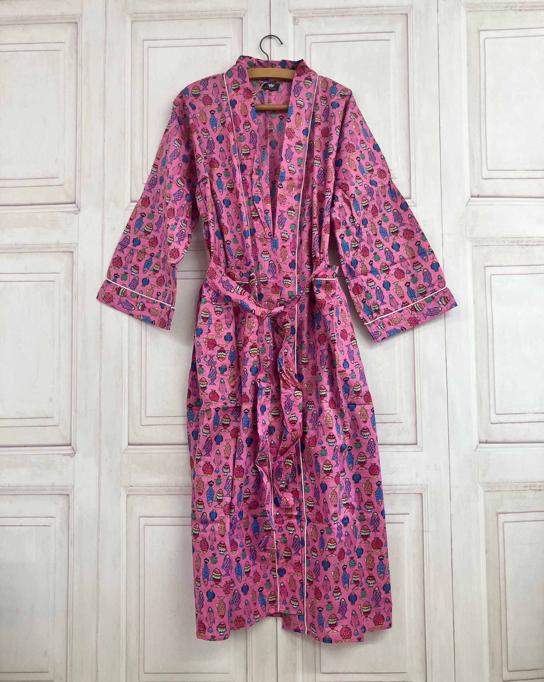 Beautiful cotton dressing gown with Indian block printing.