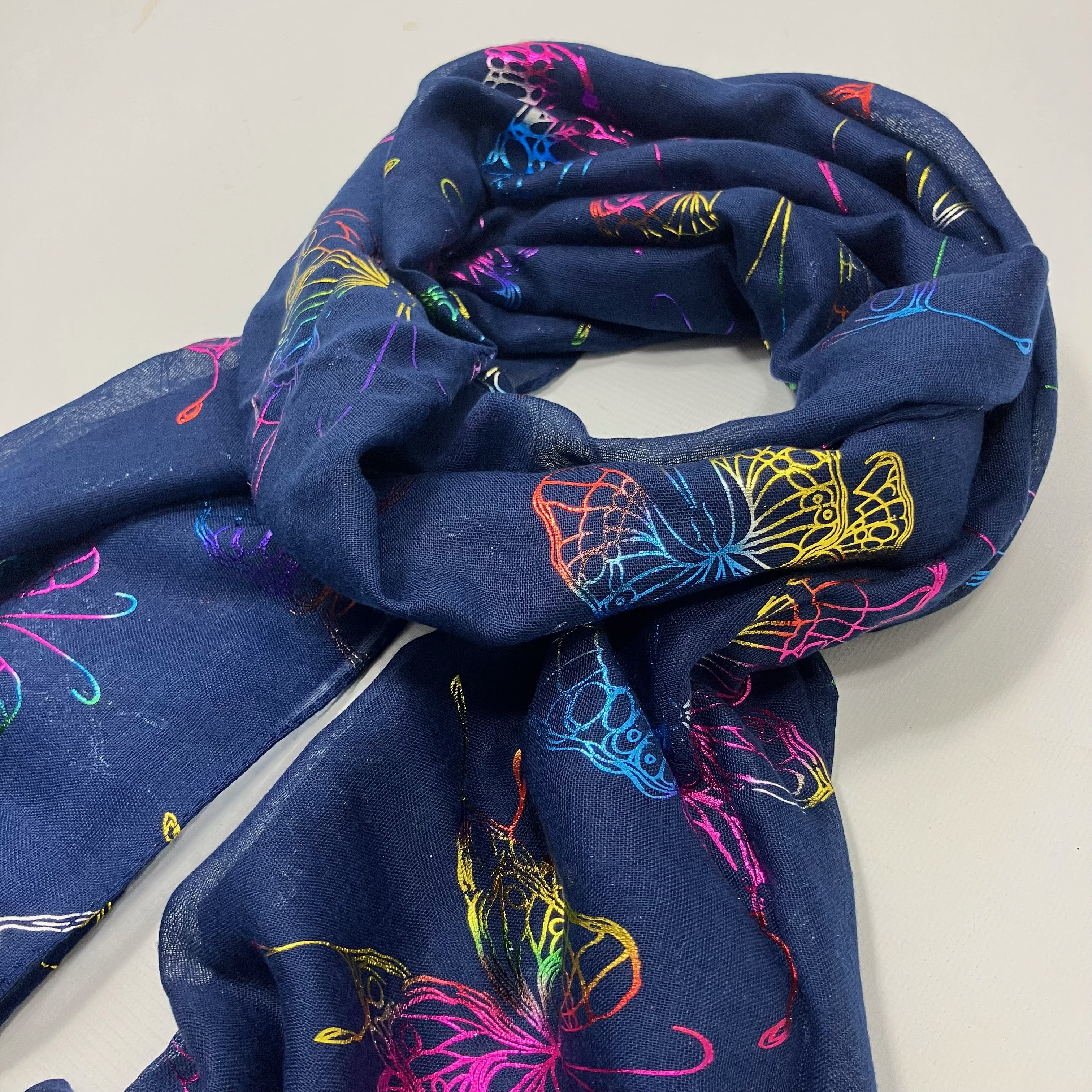 Foil rainbow glittery large butterfly printed scarf