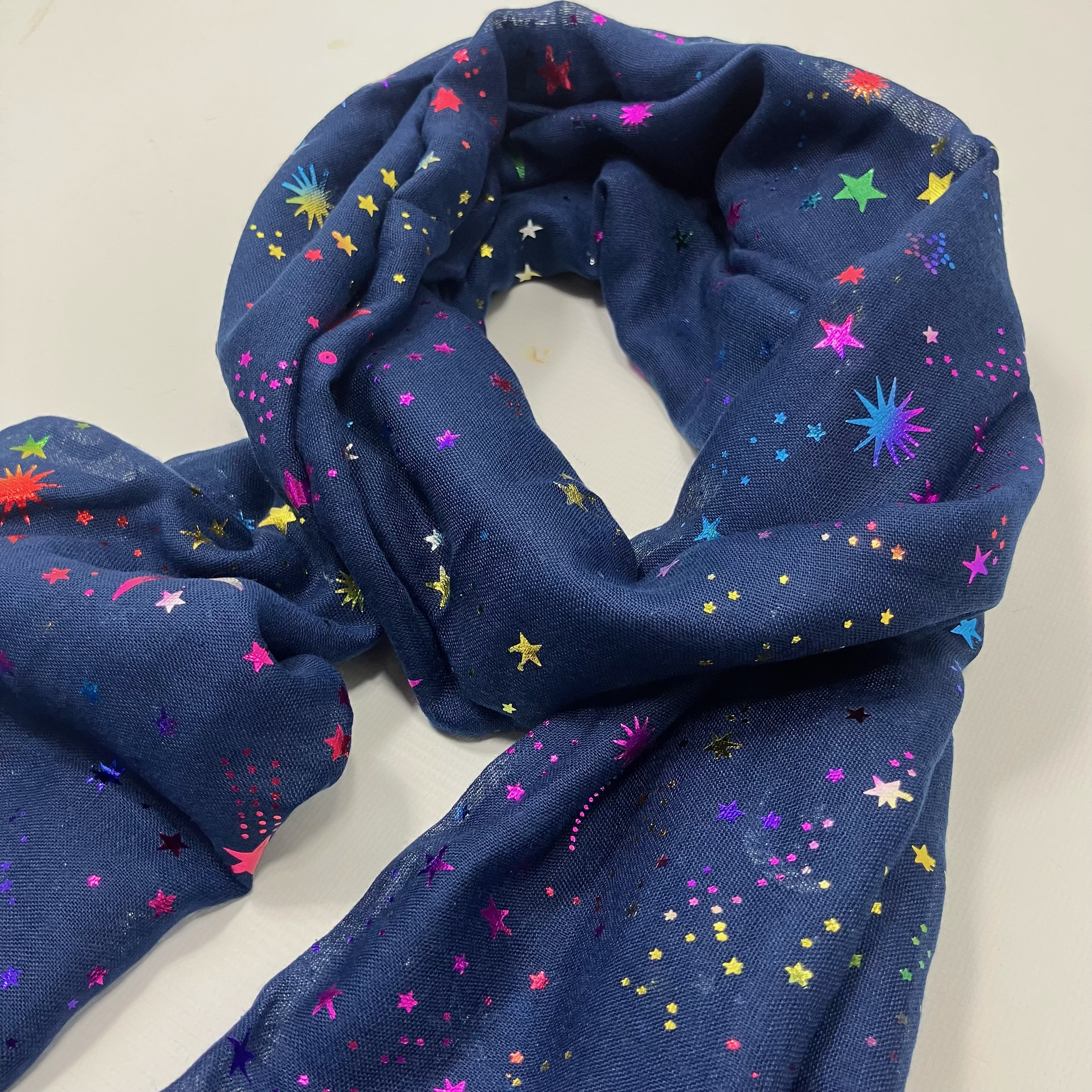 Foil glittery moon and stars printed scarf