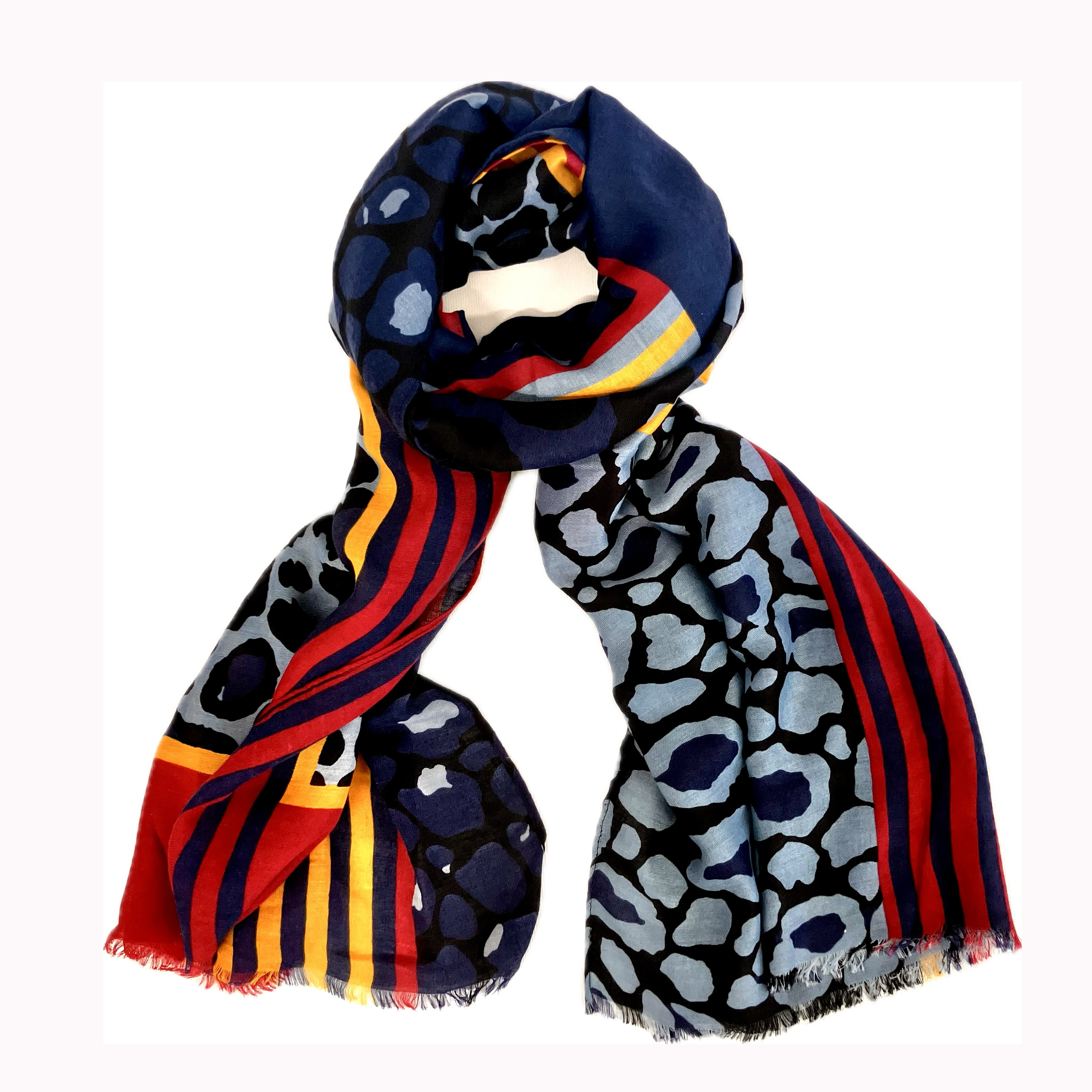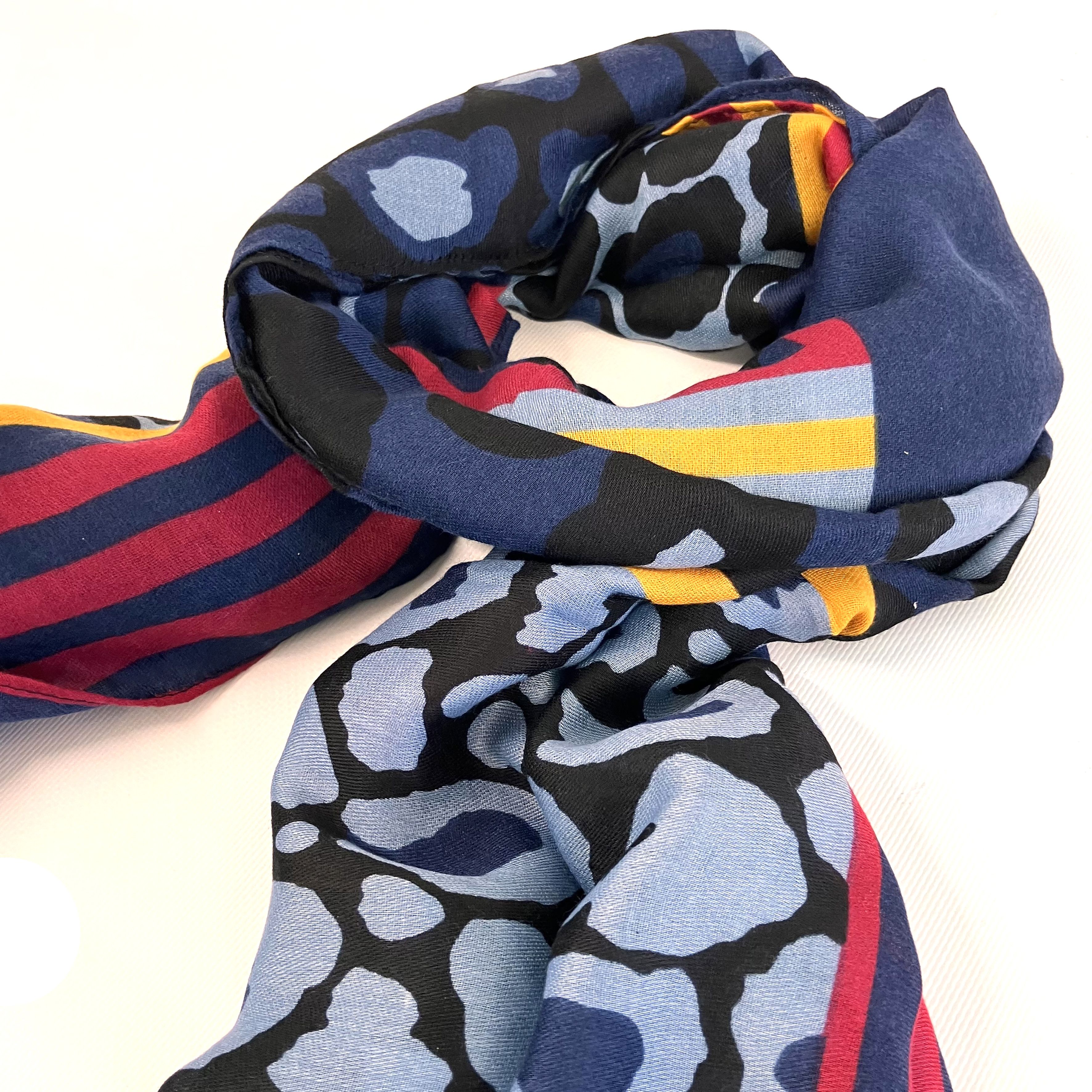 Leopard printed scarf with block colour boarder