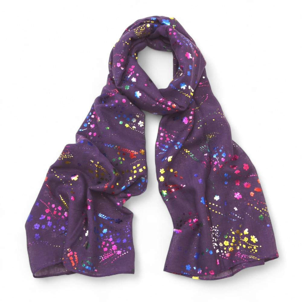 Lovely multi coloured glittery foil flower printed scarf