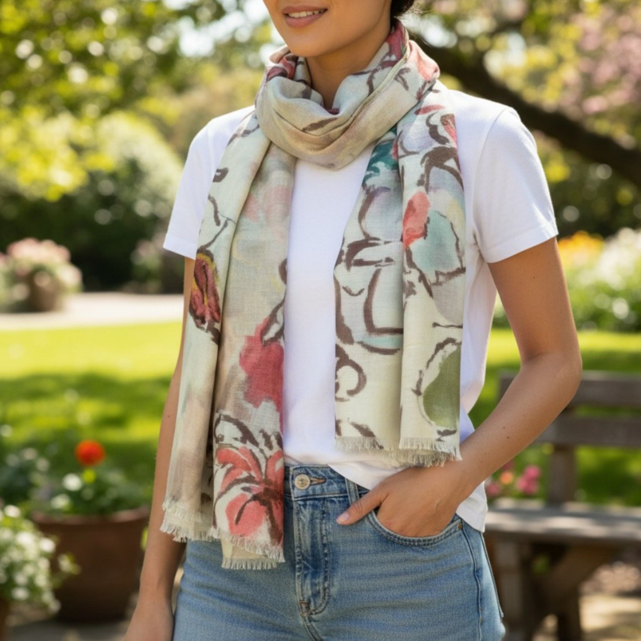 Pixel floral summer printed scarf
