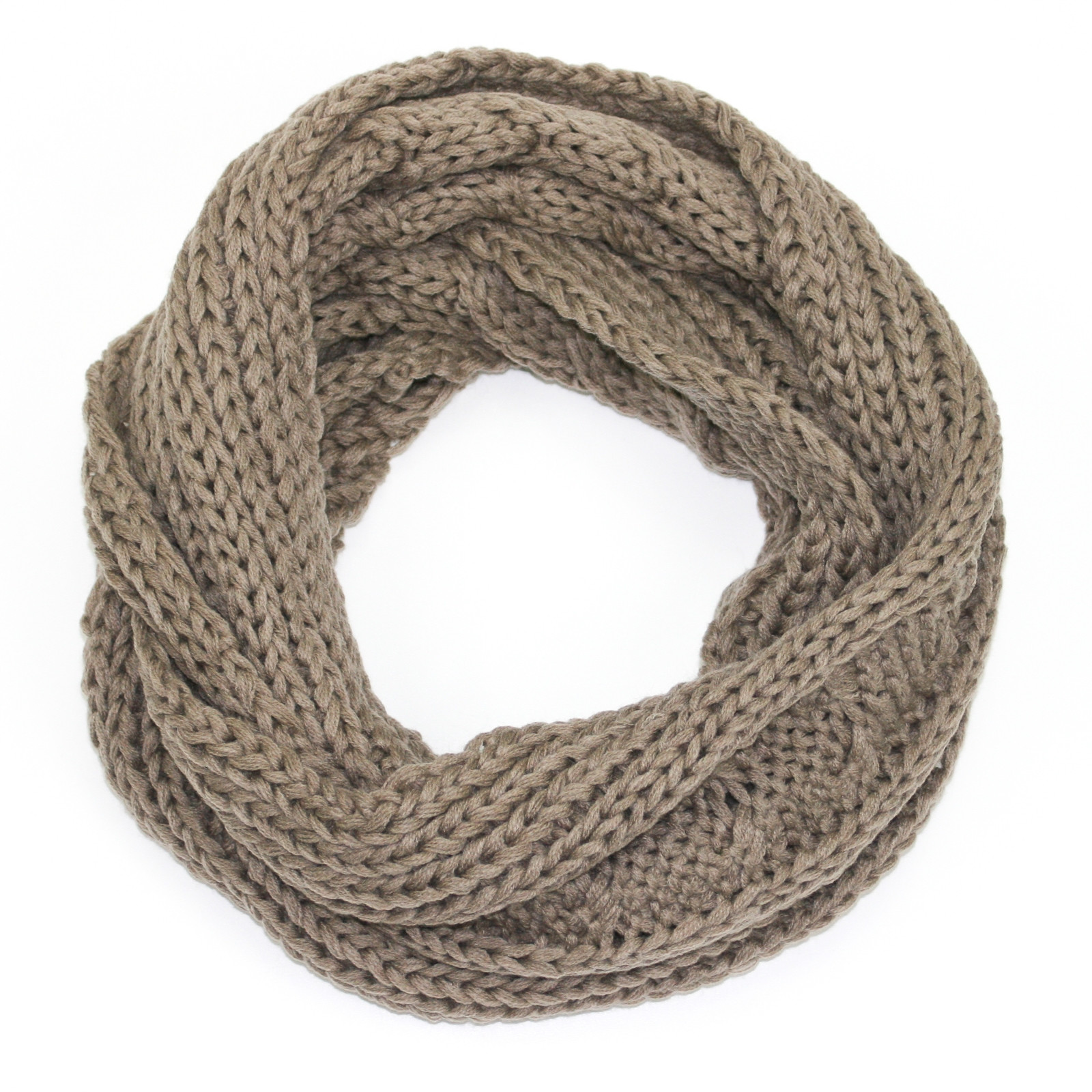 Keep warm with this chunky cable knit snood and hat set